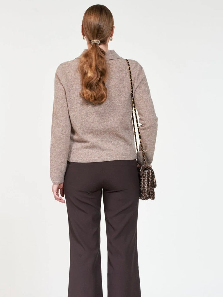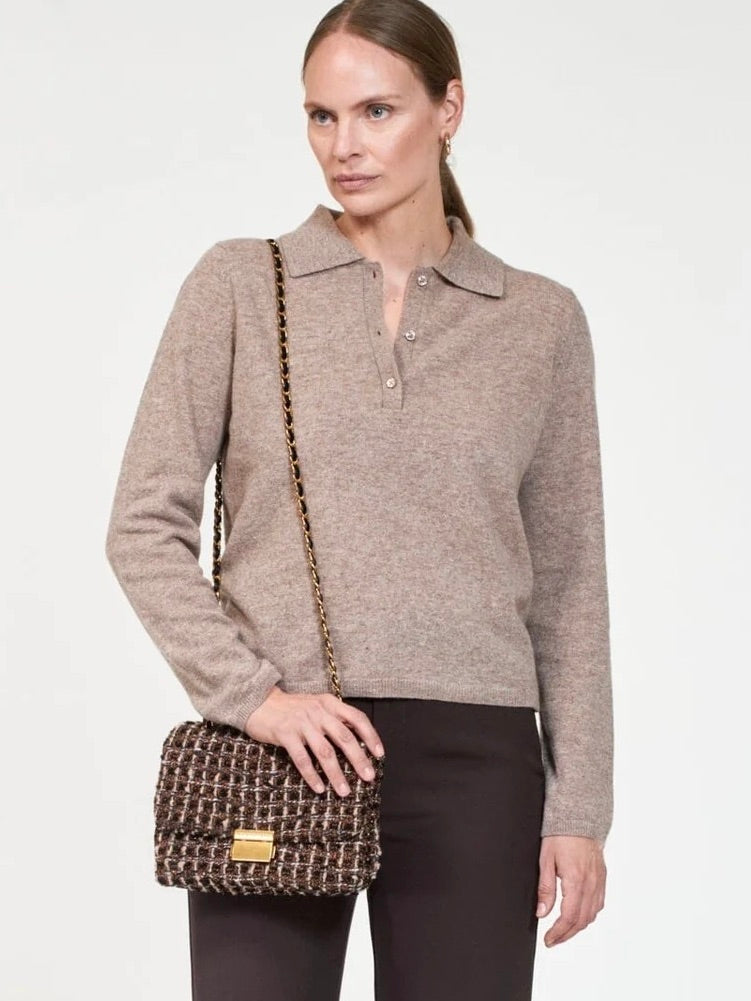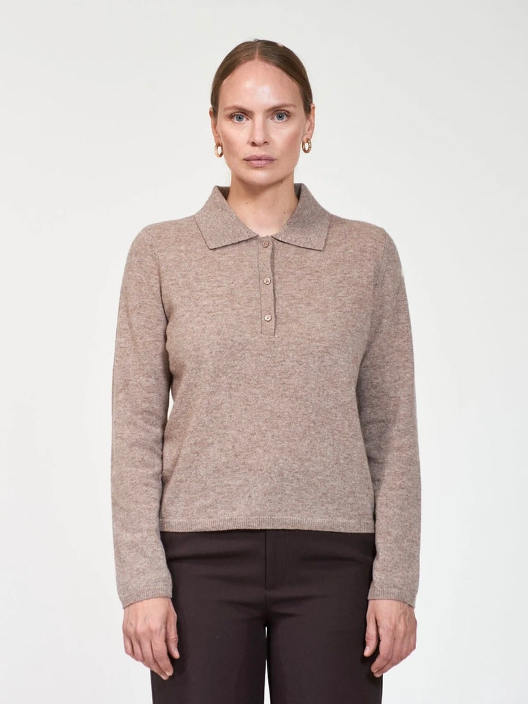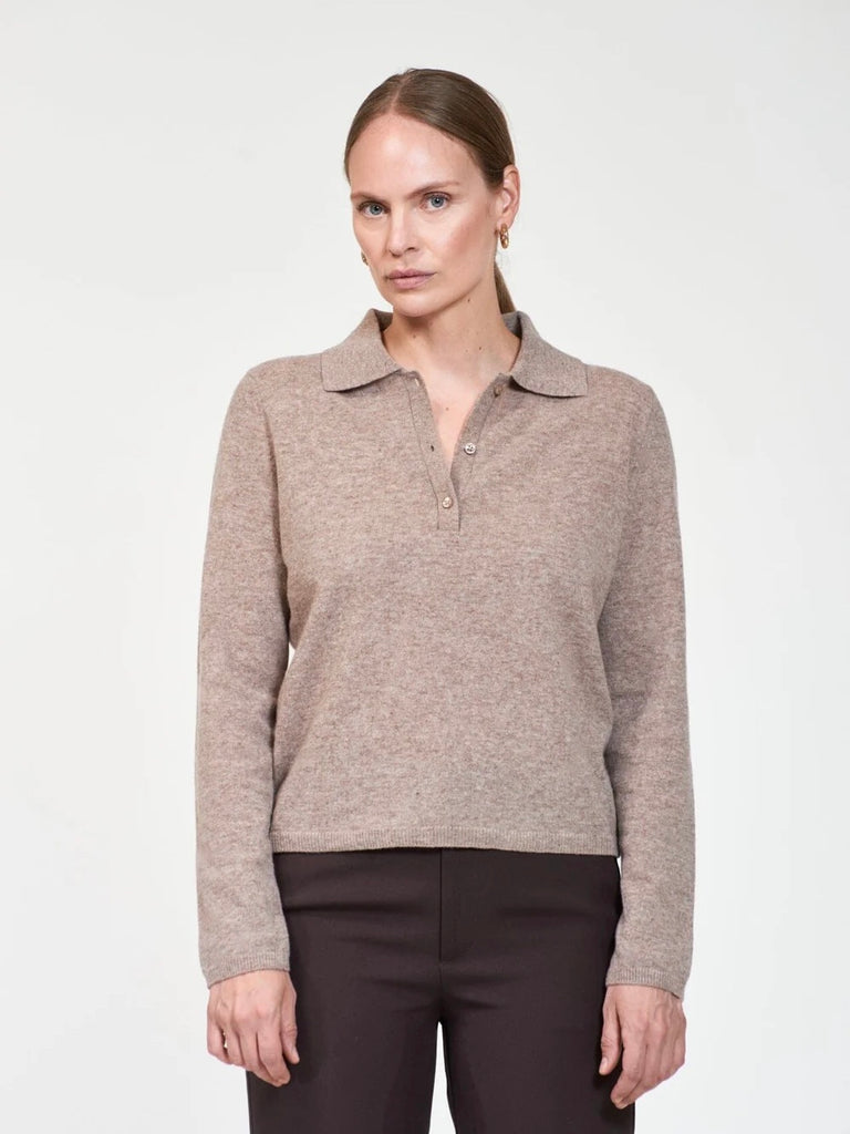 Cassie er en klassisk, langermet poloskjorte i en eksklusiv ullblanding med hele 80 % ull. Den har en nett, men fast fasong som gir et velkledd og strukturert uttrykk, samtidig som den føles myk og behagelig mot huden. Med sin tidløse krage og knappestolpe i front, er Cassie et allsidig plagg som løfter ethvert antrekk – perfekt både til jeans og dressede bukser.