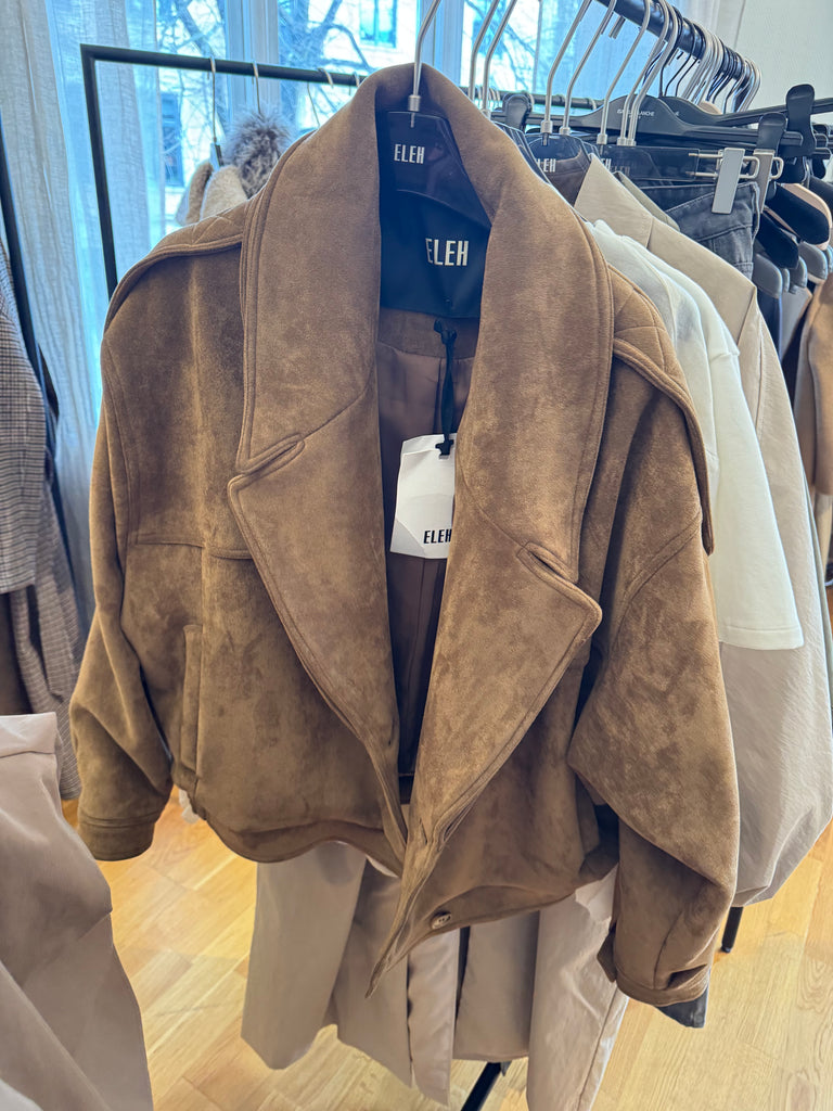 Superkul jakke med et litt retor uttrykk. Lekker kvalitet og en meget naturtro semsket skinn finish.