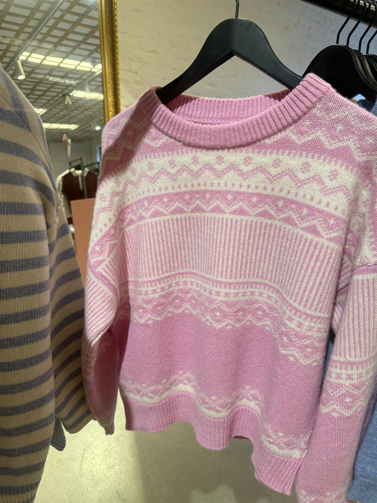 STIRLING strikket ullgenser, Lt Pink/Offwhite