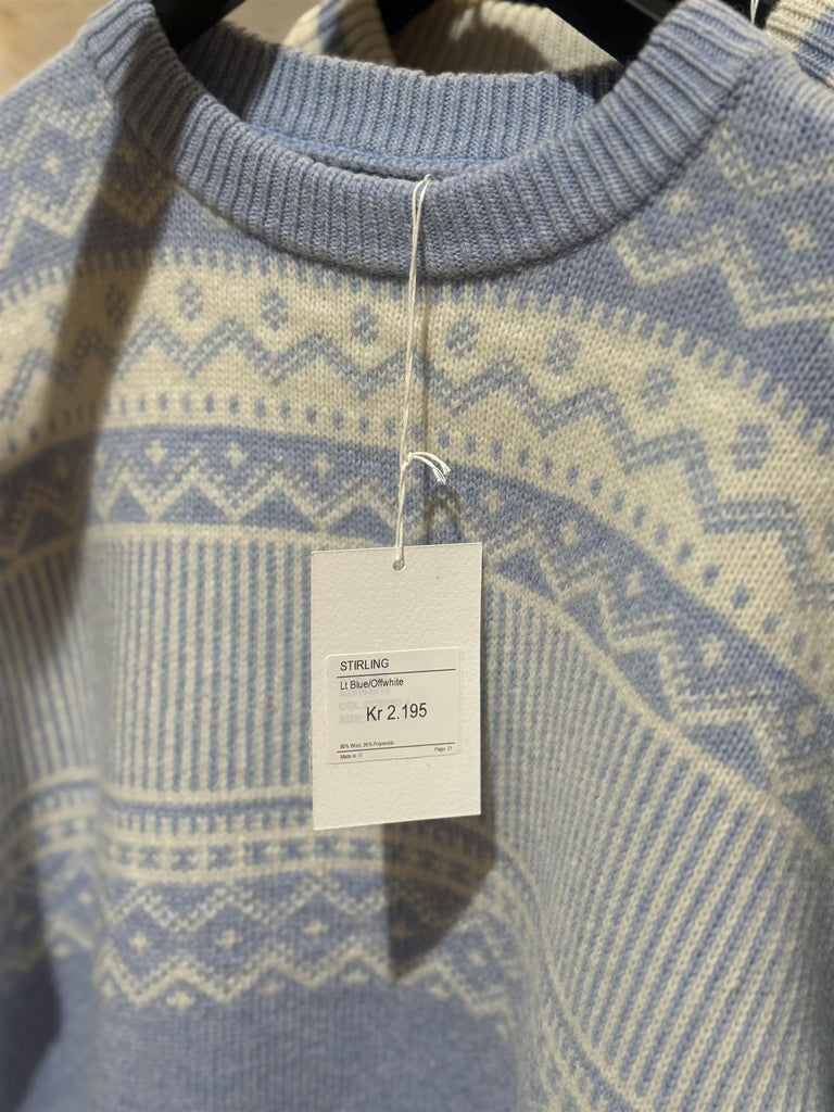 STIRLING strikket ullgenser, Lt Blue/Offwhite